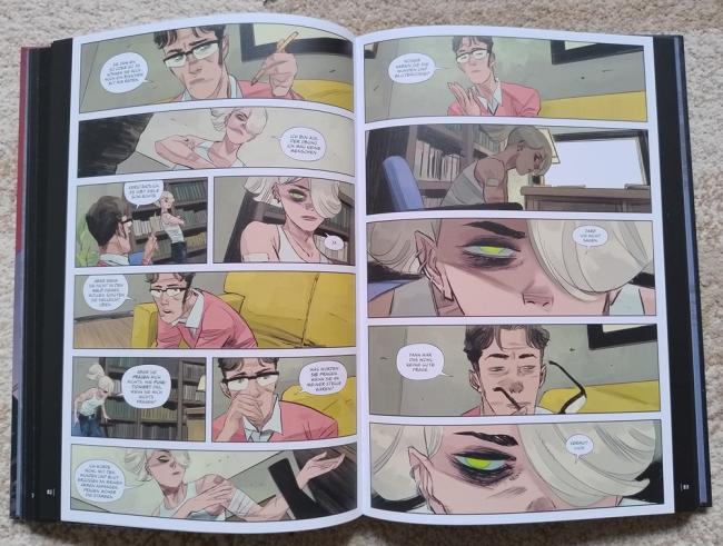 Der „Splitter Verlag“, der mir dankenswerterweise ein Rezensionsexemplar zur Verfügung stellte, fast in diesem 8. Sammelband nun die Hefte 36 – 40 zusammen. Neu ist hierbei, dass keine durchgängige Geschichte erzählt wird, denn wir haben hier stattdessen eine Anthologie. Kurze Geschichten rund um das Leben und vor allem Kämpfen der Monsterjägerin Erica, die überraschend gut dazu geeignet sind, um die Protagonistin der Reihe greifbarer werden zu lassen. So bricht sie beispielsweise aus althergebrachten Arbeitsritualen aus, indem sie auch tierische Ängste für sich arbeiten lässt, oder sie verschont Zeugen, obwohl das die Geheimhaltung des Ordens gefährdet. Deutlich unterhaltsamer, gerade weil sie mal nicht auf Horror-Action setzen, sind aber die „Gesprächsepisoden“. Etwa wenn Erica zum Psychotherapeuten geht oder sie sich, schwer verletzt in einem Baumhaus versteckend, mit neugierigen Kindern herumschlagen muss. Das sind kurze Episoden voller Herz, die beweisen, dass selbst eine so geradlinige Horror-Actionreihe auch zu großartigem Storytelling fähig ist.