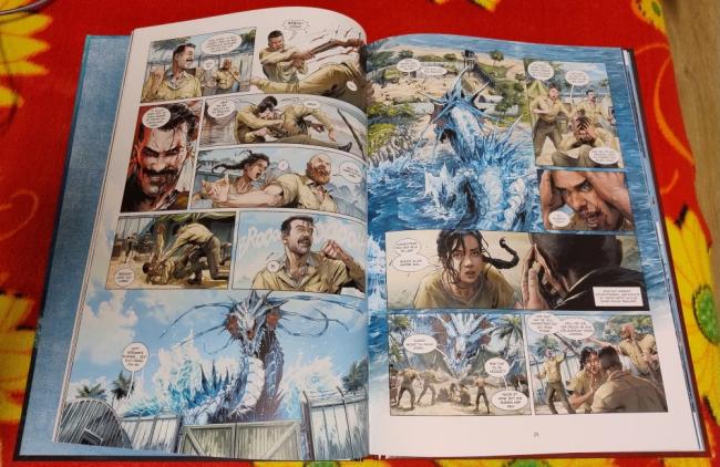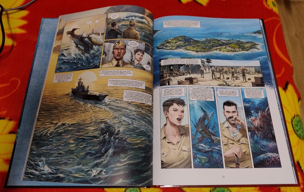 Das Jahr ist fast rum und damit endet eine der prinzipiell interessantesten Reihen aus dem „Splitter Verlag“, welche mir dieses Jahr immer wieder ein wenig das Leben versüßt hat: „Kriege & Drachen“ heißt die Anthologie-Reihe, in Menschen mit besonderen Fähigkeiten (und oft nach besonders traumatischen Erlebnissen) eine telepathische Verbindung zu einem Drachen aufbauen, der sie dann in verloren geglaubten Kriegen doch noch zum Sieg führt. Zugegeben, das waren jetzt alles keine tiefgründigen Dramen, sondern lediglich leckere Action-Snacks, aber Spaß hatte ich dann doch mit diesen pulpigen Weird War-Storys. Der letzte Band des ersten Zyklus schließt nun den Kreis, denn es geht erneut in den zweiten Weltkrieg, allerdings am anderen Ende der Welt. Denn nach der Luftschlacht um England (Link) prügeln und beißen sich die Drachen nun im pazifischen Ozean die Seele aus dem Leib. Und das funktioniert, so viel Spoiler darf schon mal sein, auch in seinem vierten Aufguss immer noch ziemlich gut...