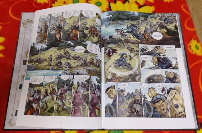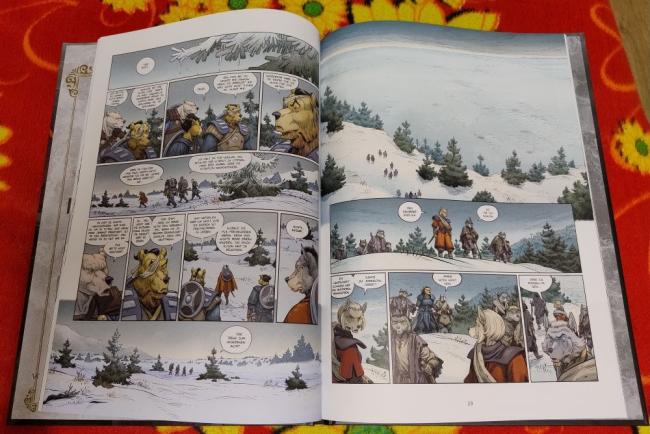 Ganz schön viel passiert in den ersten drei Bänden des dritten Zyklus, da wird es doch mal Zeit für eine Pause, oder? Aber die gönnt uns das Kreativ-Trio Lewelyn nur auf den ersten Blick, denn auch wenn sich die Geschichte diesmal auf wenige Handlungsstränge und Schauplätze fokussiert, passieren hier kriegsentscheidende Dramen! Einerseits ist der umgedrehte Prinz auf der Flucht, sodass die untereinander zerstrittenen Bären-Späher durchs verschneite Ödland auf die Suche gehen. Rasch wird hier aber klar, dass nicht unbedingt die rebellischen Wölfe, sondern eigene Machtbestrebungen und offene Rechnungen die größte Gefahr darstellen... Anders in Anglion, denn auch wenn die Bären die zersplitterten Löwen-Truppen nach und nach abmetzeln, kommen sie bei ihrer Suche nach der Königin nicht voran. Was sie irgendwann übermütig werden lässt...