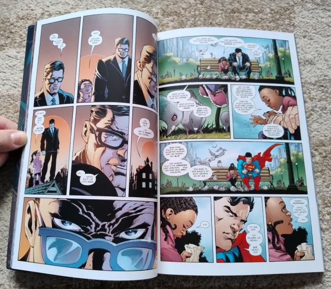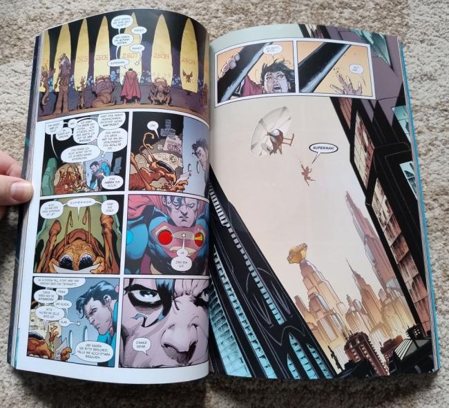 Die Hindernisse, die es auf der Suche zu überwinden gibt, sind dabei ziemlich spannend – Gerade auch, weil sie eben in nur wenigen Fällen auf klassische Action setzen. Also ja, da gibt es etwa die Abwehr einer Invasion oder eine Zeitreise in den 2. Weltkrieg. Aber dann gibt es eben auch Gedankenspiele über die Zurückgelassenen, die verzweifelt auf Superman hoffen, einen Boxkampf ohne Superkräfte, ein Wettrennen gegen Flash (und irgendwie auch Lex Luthor) oder die Suche nach der richtigen Ansprechperson in einer Weltraumbehörde, was frappierend an den Passierschein 38A aus Asterix erinnert... Weiß ich jetzt noch viel mehr über Superman, als ich vorher wusste? Nein. Ist das aber eine sehr nette Ergänzung in altbekannter King-Qualität, noch dazu sehr hübsch verpackt? Absolut! Wer sich also selbst als Superman-Fan bezeichnen würde, kann hier bedenkenlos die 24 € investieren, welche „Panini Comics“ (die mir dankenswerterweise ein Rezensionsexemplar zur Verfügung stellten) gerne für den 176 Seiten starken Sammelband hätte.
