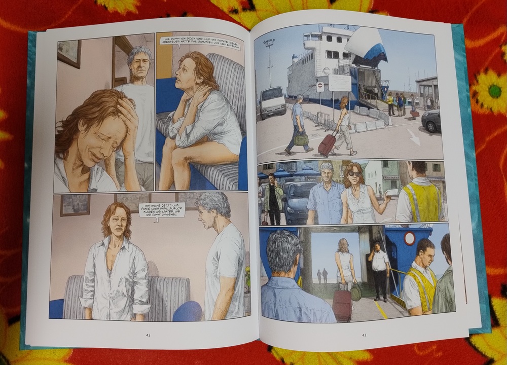 Bis hierhin ist auch alles gut, es wird halt ein wenig zwischen den beiden Pärchen hin und her geswingt, so fasst der „Splitter Verlag“ (der mir dankenswerterweise ein Rezensionsexemplar zur Verfügung stellte) auch die Geschichte zusammen. Doch dann passiert das Ungeheuerliche: Fréderique und Gérard verlieben sich ineinander, weshalb ihre jeweiligen Beziehungen zerbrechen. Françoise zieht sich als betrogene Ehefrau zurück zu ihrer Tochter, Gérard dagegen bumst Fréderique, als wäre er wieder zwanzig Jahre jung. Und auch wenn sie weiter ihren unkonventionellen Lebensstil beibehält (inklusive wild in den Wald kacken – und ja, das wird genau so gezeigt), kann sich Gérard nicht mehr von ihr lösen, selbst als er in sein bürgerliches Großstadtleben zurückkehrt.