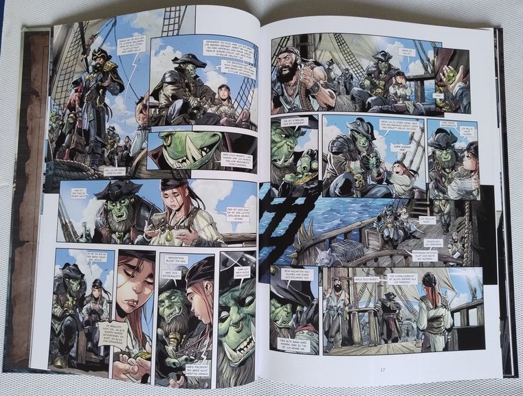 Fazit: „Die Bruderschaft der Stürme #1 Thoorak“ (Link) macht mir beim Lesen deutlich mehr Spaß, als man nüchtern betrachtet glauben sollte. Denn die flott erzählte Piraten-Geschichte bietet spaßige, wenn auch etwas stumpfe Fantasy-Action mit wunderschönen Zeichnungen. Definitiv eine Empfehlung!